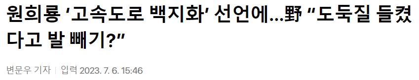 경로 변경에 대해 의혹이 제기되었으면 당연히 경로를 변경하게된 경위를 제시해야 한다. 그런데 고속도로 건설 자체를 폐지시킨다? 하여간에 국힘 꼴통들이 하는 짓은 언제나 상상 그 이상이다. 그런데 제 입으로 간호법은 윤석열의 뜻이라고 떠들어 댄 영상이 돌아다니는 데도 윤석열이 간호법에 거부권을 행사한 후에 그에 대해 일언반구 없는 원희륭이니 만큼 국힘 꼴통들의 기준으로는 전혀 이상한 것이 아닌 것이다.